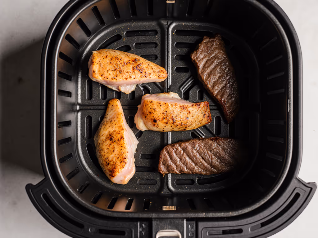 - Shorten time by 20% (20-minute oven roast → 16 minutes air fryer)
